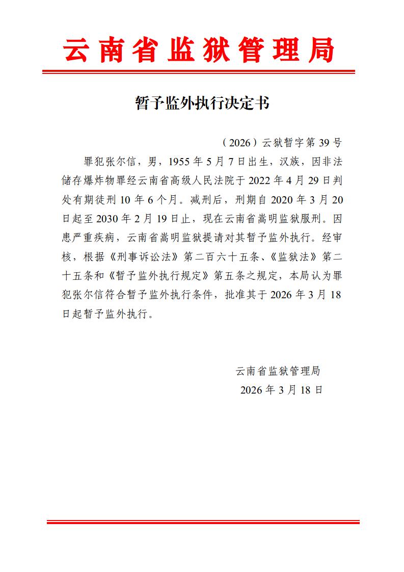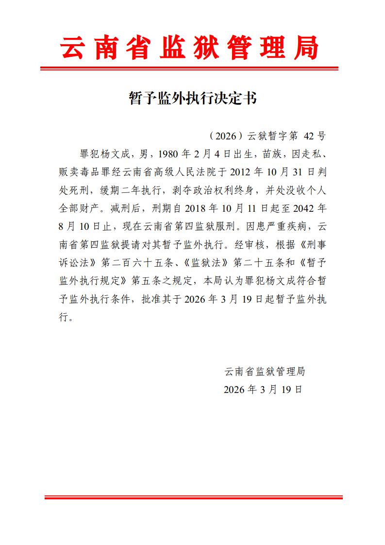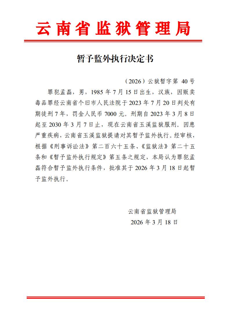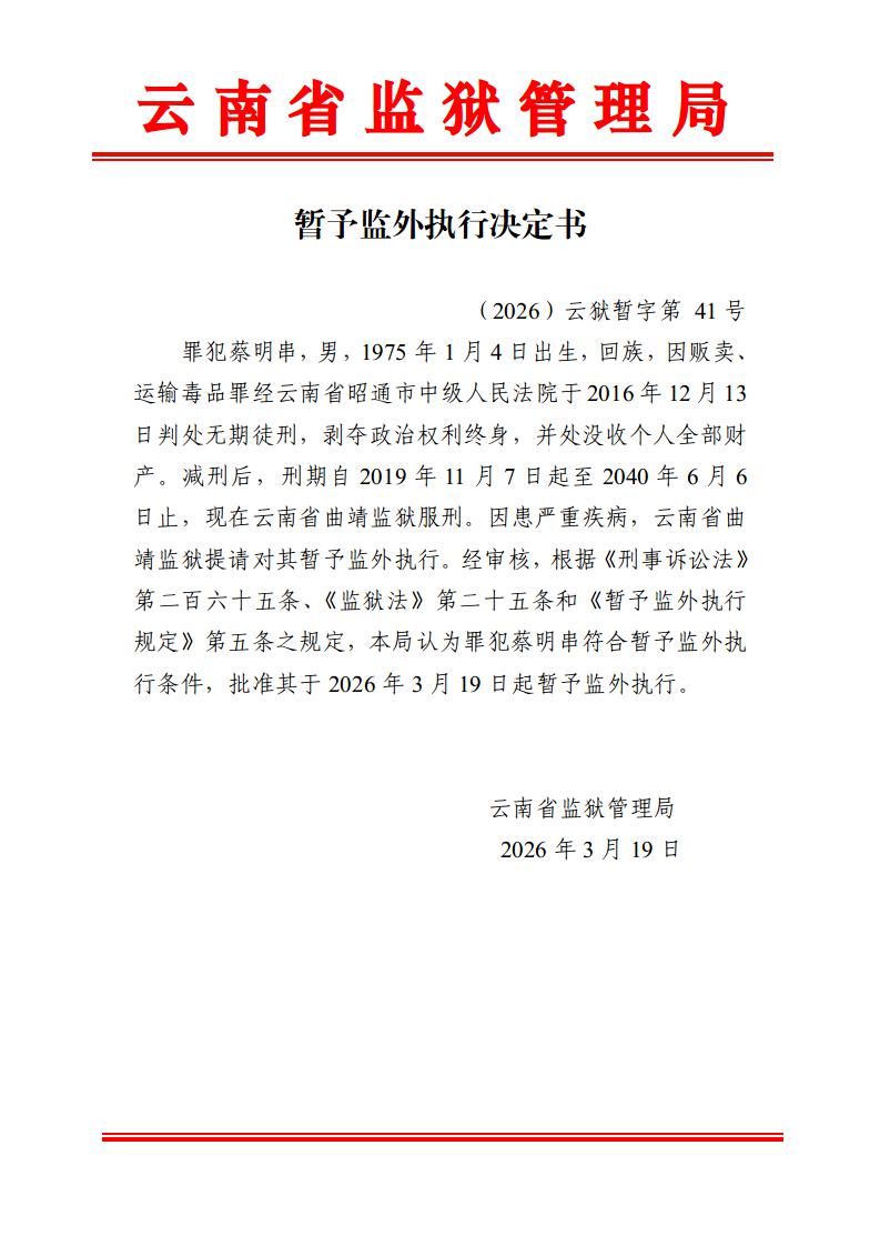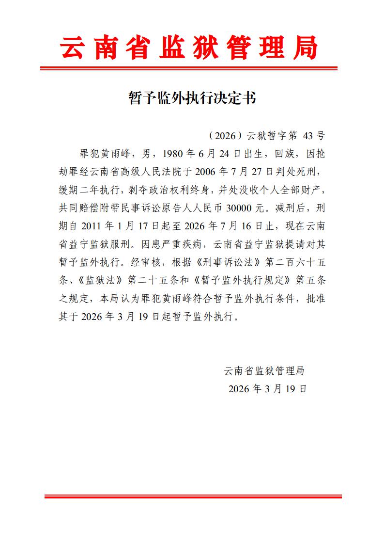 暂予监外执行决定书(2026)第39-43号